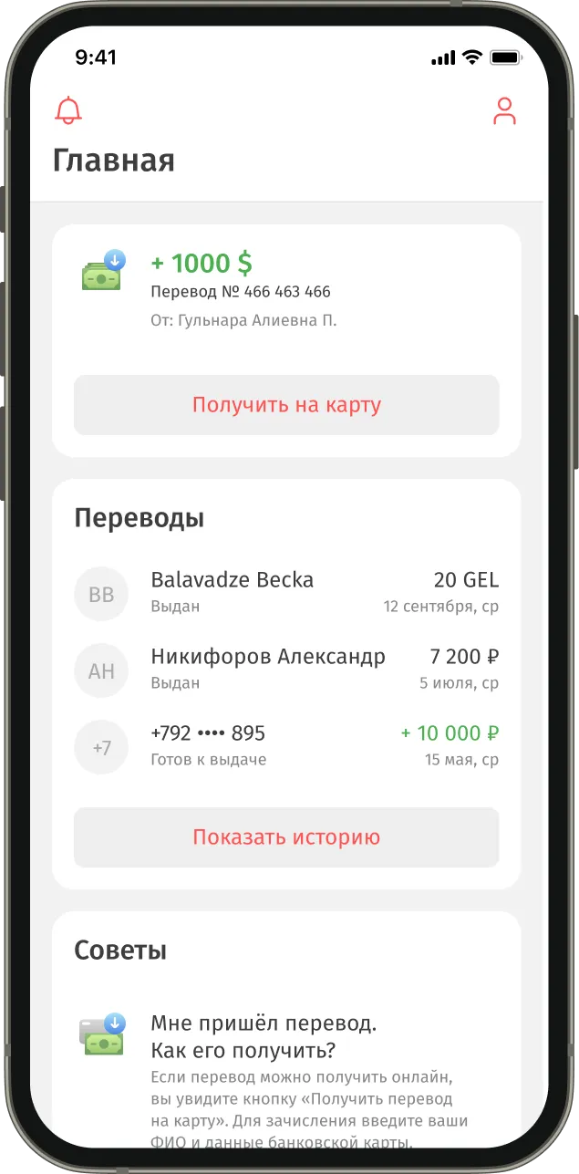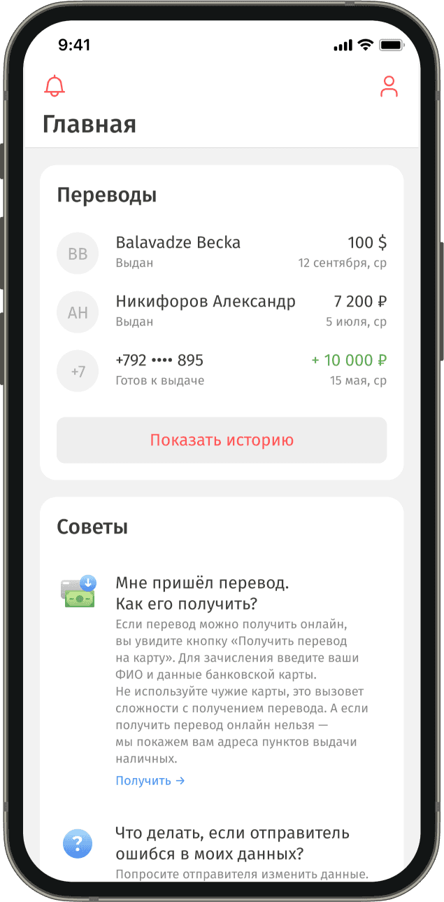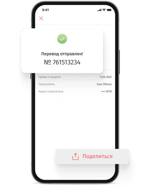 Перешлите получателю уникальный номер перевода, чтобы он смог отследить статус на сайте или в мобильном приложении.