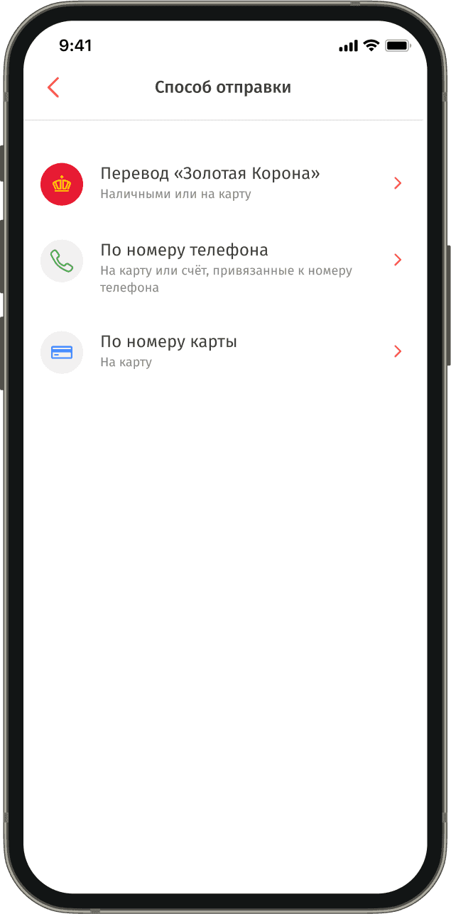 Получение денежных переводов доступно, как правило, в течение нескольких минут⁴ после отправки. После скачивания мобильного приложения «Korona»(6+), пройдите регистрацию стандартным способом – по номеру телефона. Не забывайте, что и на сайте вы можете уточнять детали и стоимость перевода, а также проверять его статус после отправки по уникальному номеру перевода.
