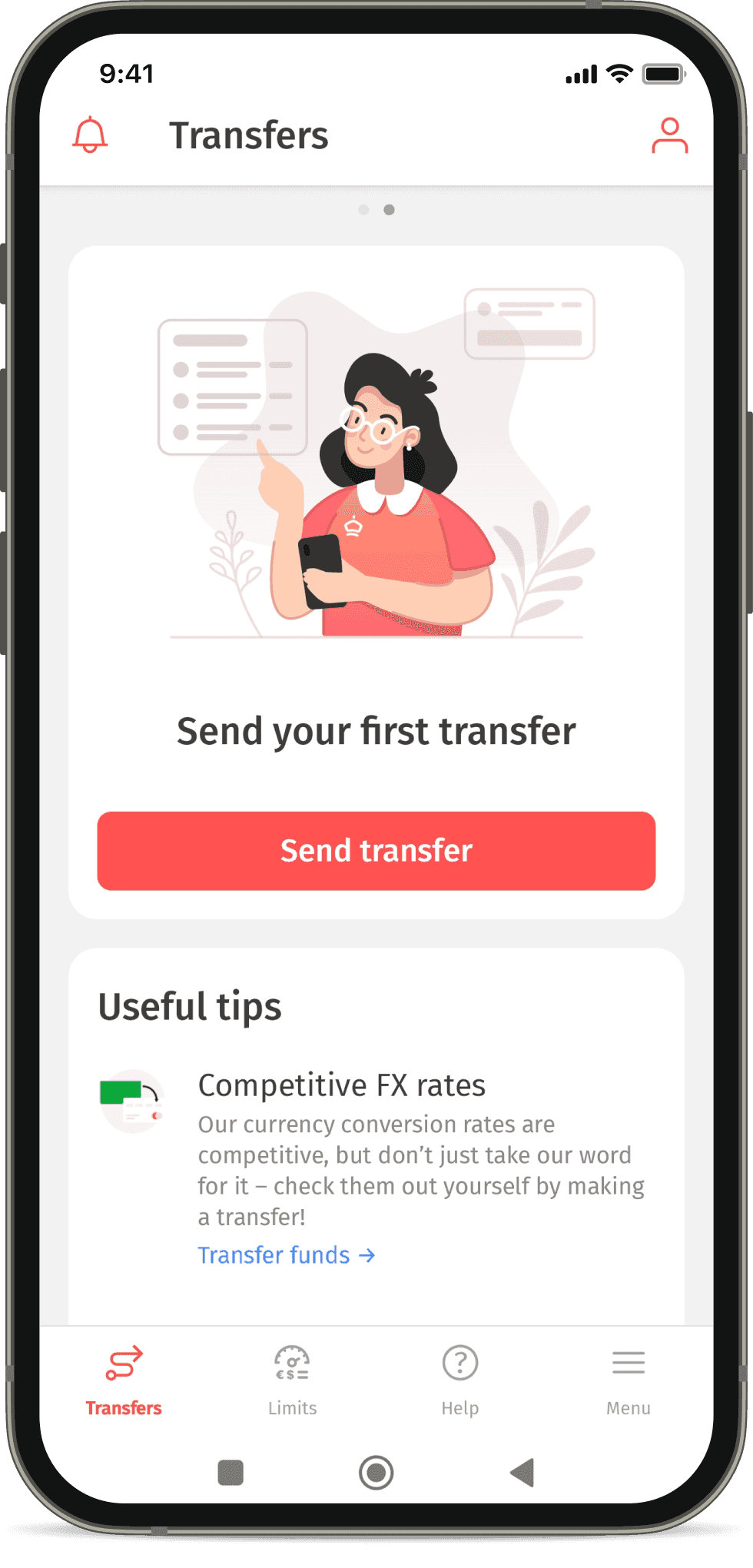 - 1Install the Korona app and Tap the “Send transfer” button