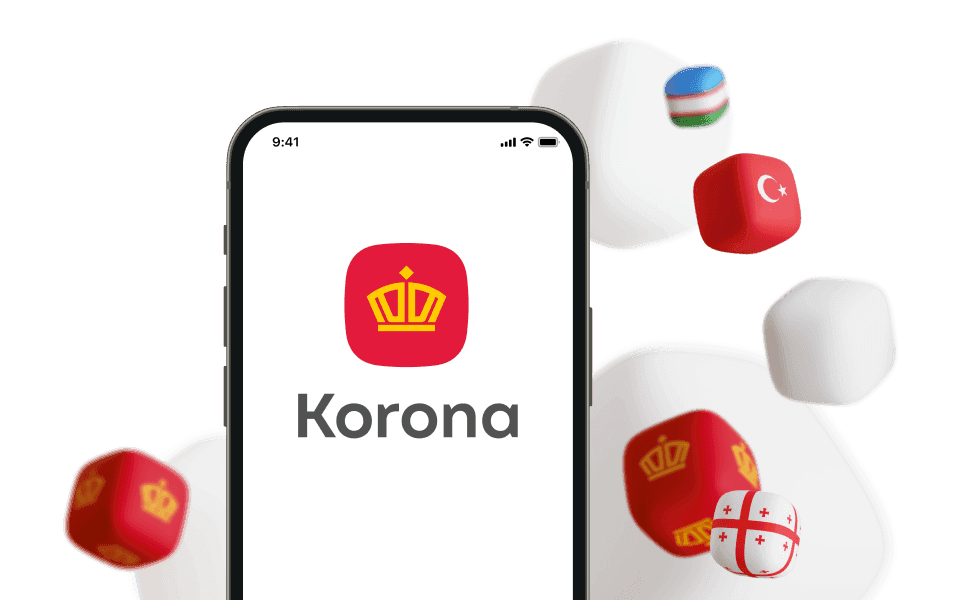 Download the Korona app from the App Store or Google Play. Choose your language and the country you are in. Enter your phone number from the country you will be sending the transfer from. Enter the 6-digit code from the SMS