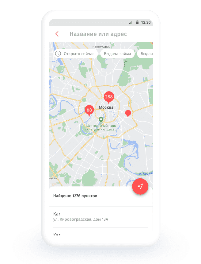 - 1Выберите ближайший пункт отправки переводов. Воспользуйтесь картой на сайте или разделом «Пункты» в приложении.